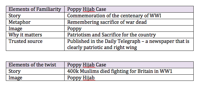 We will use the poppy hijab case to illustrate this balance of resonance/familiarity and dissonance/ the twist