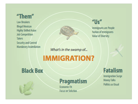 To illustrate, the Frameworks Institute recently mapped out the core frames (pro & anti) in the immigration reform debate in the USA[4]: